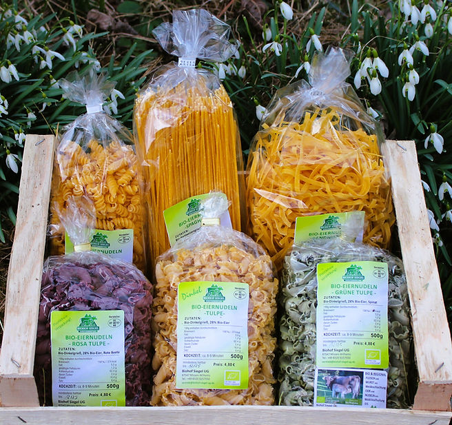 Bio-Eiernudeln aus Eiern von unseren glücklichen Hühnern aus mobiler Freilandhaltung!